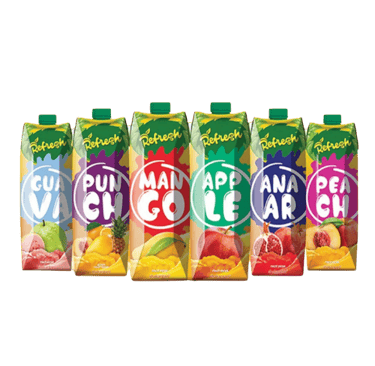 Available Flavours: Mango, Apple, Orange, Red Grape, and Guava.